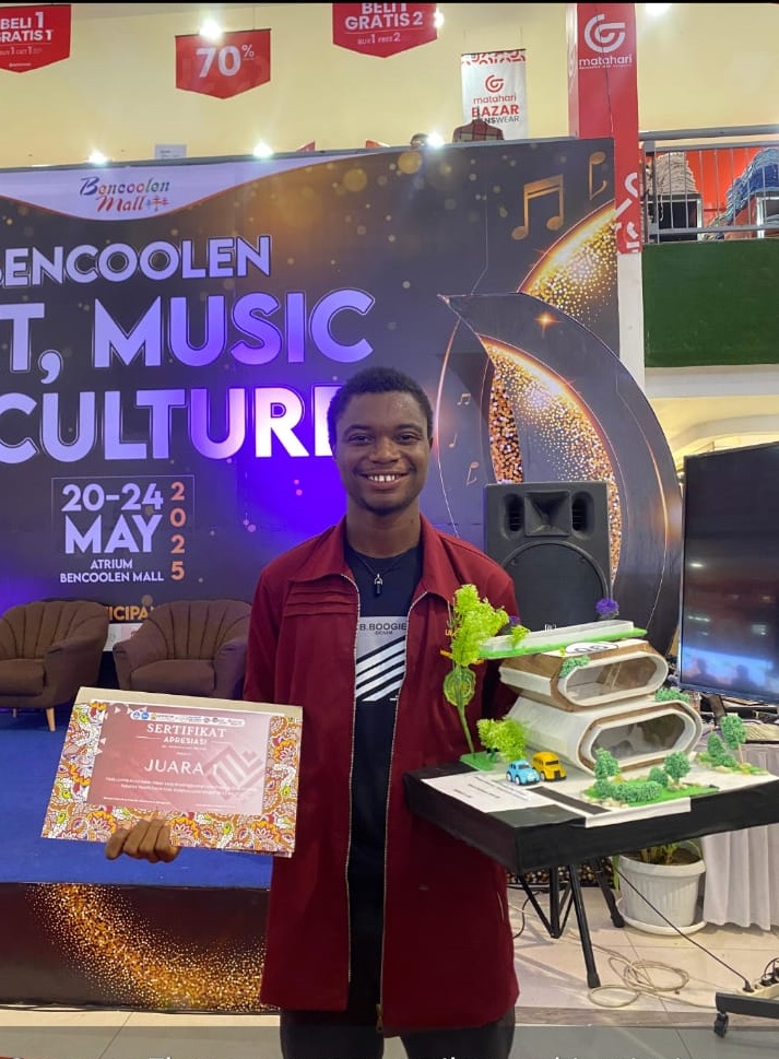 Menarik, kelompok 6 sebagai pemenang beranggotakan Flomo Remember Simale, Fitriah, Alji Andika, Rahul, Redho Alfariz, Panor Pajrisalah dan Hendrik, tercatat salah satu anggotanya adalah mahasiswa internasional asal Liberia, Flomo Remember Simanle. Flomo saat ini menempuh studi di Program Studi Arsitektur FT UM Bengkulu. Keterlibatan mahasiswa internasional ini memberikan nilai tambah dalam perspektif desain dan kolaborasi lintas budaya di dalam tim. Prestasi ini menjadi bukti nyata bahwa Program Studi Arsitektur FT-UM Bengkulu tidak hanya mendorong kreativitas dan daya saing mahasiswa di tingkat regional, tetapi juga menciptakan lingkungan pembelajaran yang inklusif dan berorientasi global.