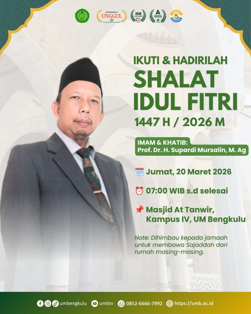 Di Kampus I, yang berlokasi di kawasan Kampung Bali, Kota Bengkulu, Sholat Idul Fitri akan dipimpin oleh Nurhadi, M.A sebagai imam dan khatib, yang juga merupakan Direktur Pesantren Mahasiswa UMB. Sementara itu, di Kampus IV, pelaksanaan Sholat Ied akan dipimpin oleh Prof. Dr. Supardi Nursalin, M.Ag yang menjabat sebagai Wakil Ketua Majelis Tabligh dan Tajdid Pimpinan Wilayah Muhammadiyah Bengkulu.