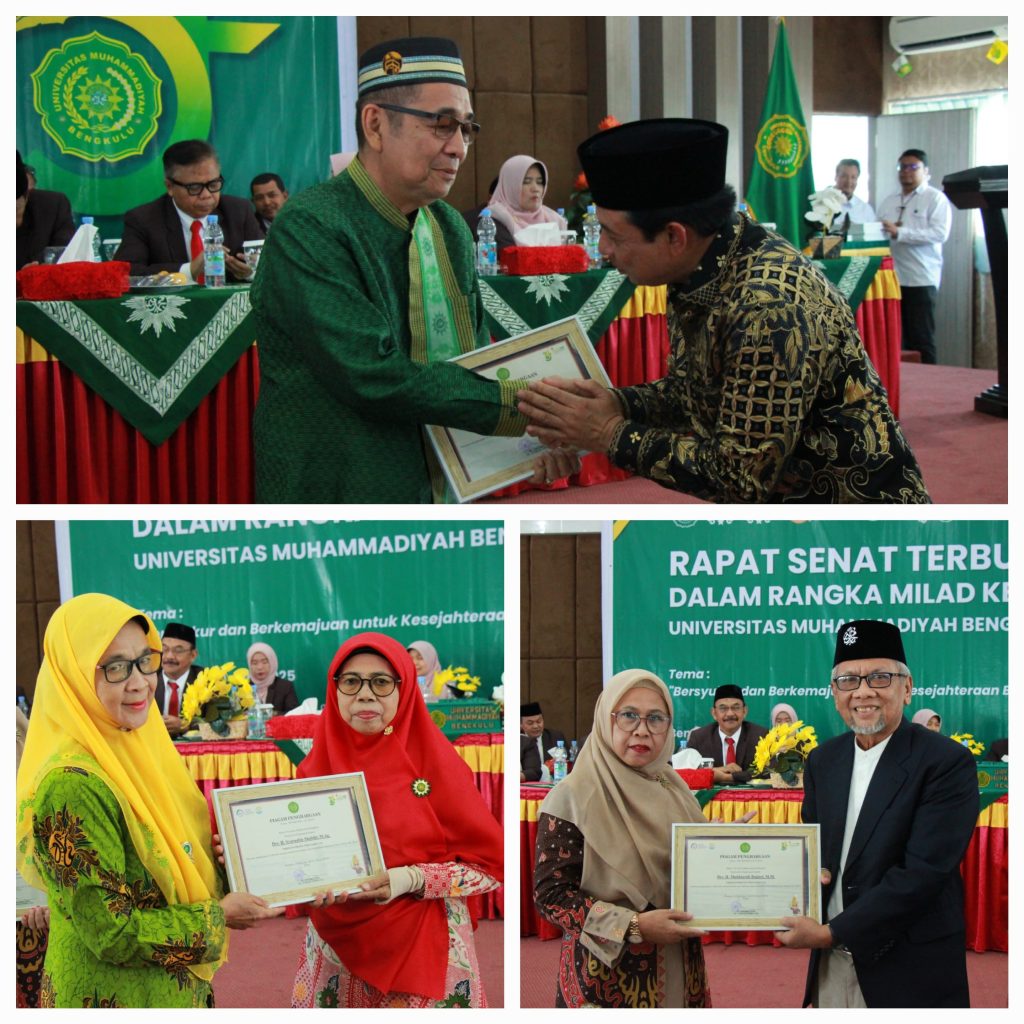 Universitas Muhammadiyah Bengkulu (UMB) memberikan apresiasi kepada tiga tokoh Muhammadiyah. Ketiga orang tersebut merupakan tokoh Muhammadiyah yang telah berdedikasi tinggi pada pendirian, pengembangan serta kemajuan Muhammadiyah hingga saat ini. Penghargaan ini diberikan langsung oleh Rektor UMB, Dr. Susiyanto, M.Si., sebagai bentuk penghormatan dedikasi mereka kepada Muhammadiyah. Penghargaan ini diberikan pada acara Milad UMB, Jum’at (20/06) aula Gedung Hasan Dien kampus 4 UMB.